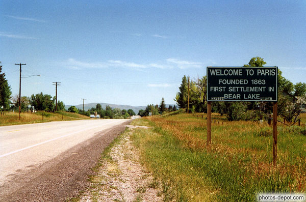 Welcome to Paris founded 1863 first settlement in Bear lake, USA, Wyoming, Grand Teton