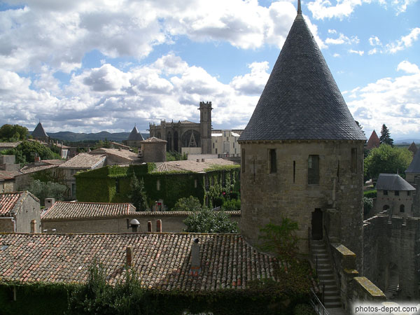 Vue de la cathédrale St Nazaire et St Celse depuis le chateau comtal, France, Languedoc Roussillon, Carcassonne