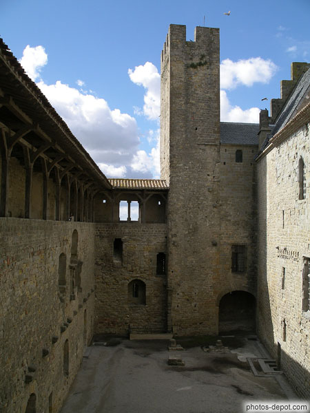 Cour du midi et tour Pinte, plus haute tour du chateau, France, Languedoc Roussillon, Carcassonne