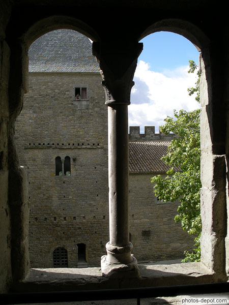 Fenêtre romane géminée rajoutée au XIIIe siècle, France, Languedoc Roussillon, Carcassonne