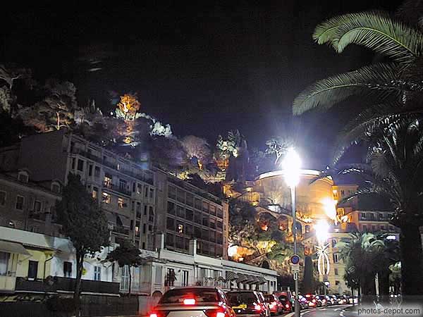 Rue éclairée de nuit, France, Provence, Nice