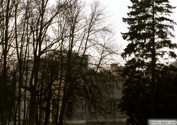 Tours crénelées derrière les arbres, Italie, Auronzo