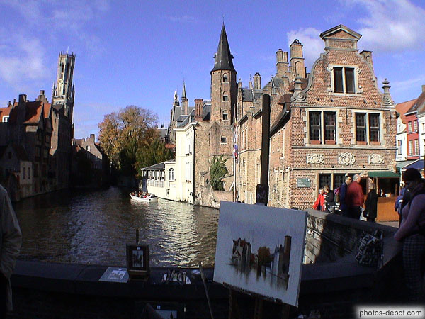 Peinture quai du rosaire beffroi, Belgique, Bruges