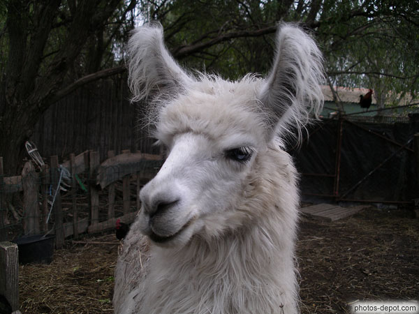 Tête de Lama blanc aux oreilles dressées, France, Languedoc Roussillon