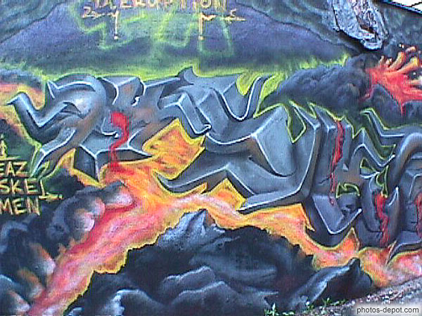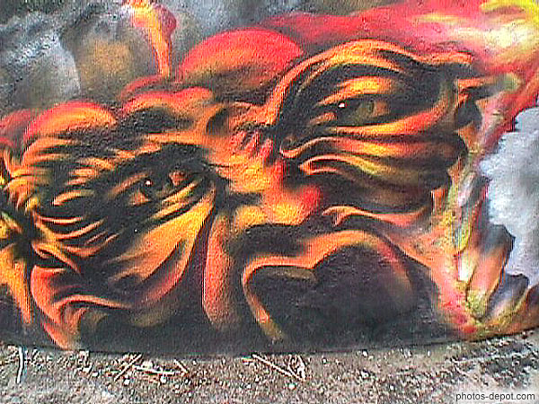 Visage plissé rouge orange jaune feu, Canada, Quebec
