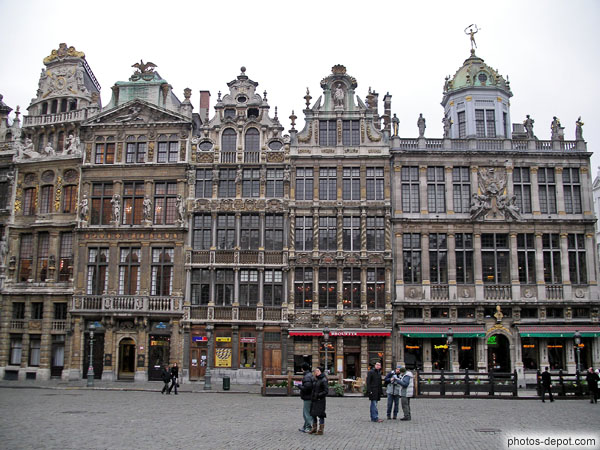 Facades de pierre sculptée des habitations moyenageuses, Belgique, Bruxelles, Grand place