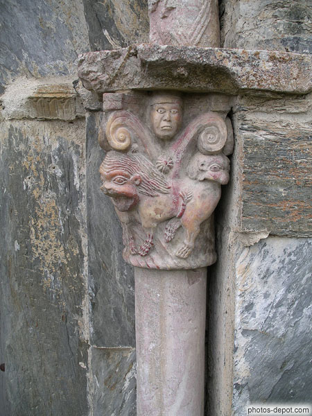 Chapiteau colonne du portail, France, Languedoc Roussillon, Prieure de Serrabone