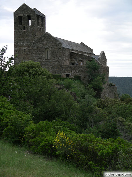 Vue du prieuré, France, Languedoc Roussillon, Prieure de Serrabone
