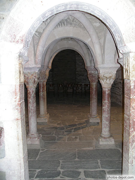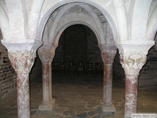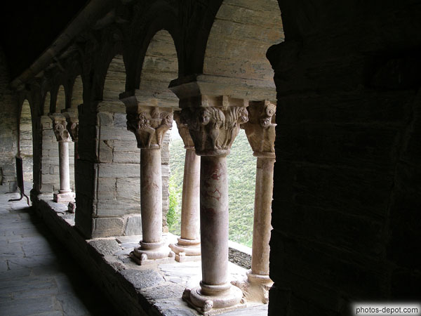 Colonnes ouvragées déambulatoire, France, Languedoc Roussillon, Prieure de Serrabone
