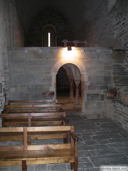 Voute d'arêtes supportant la tribune et colonnes de marbre rose, France, Languedoc Roussillon, Prieure de Serrabone