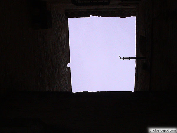 Ciel vu par un trou dans le toit de la forteresse, France, Languedoc Roussillon, Salses