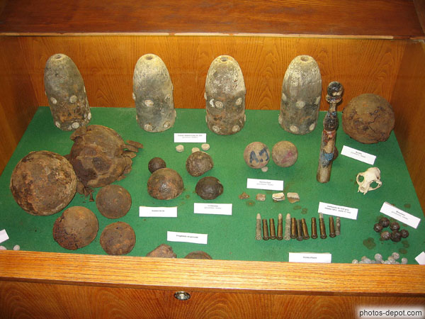 Obus, pierres à fusil, cartouches, boulets de canon trouvés aux alentours du fort, France, Languedoc Roussillon, Cerdagne, Mont Louis
