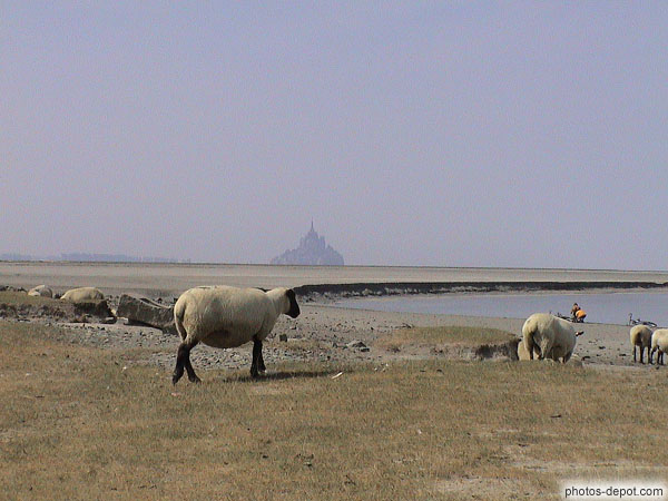 Mouton baie du mont St Michel vue de la Roche Torin, France, Bretagne