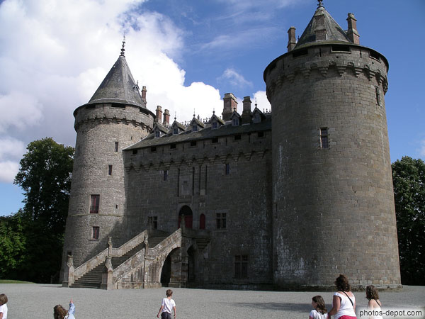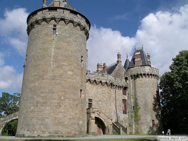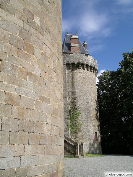Facade Sud-Ouest, tours du Croisé (XVe) et du chat (XIVe), France, Bretagne, Combourg