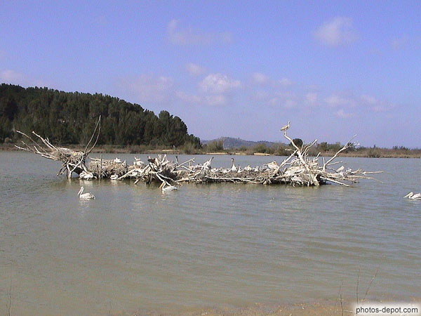 Amas de branchages servant à la nidification des pélicans, France, Languedoc Roussillon, Réserve Africaine de Sigean