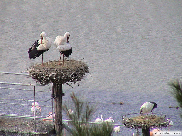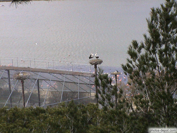 Nids de cigognes blanches, France, Languedoc Roussillon, Réserve Africaine de Sigean