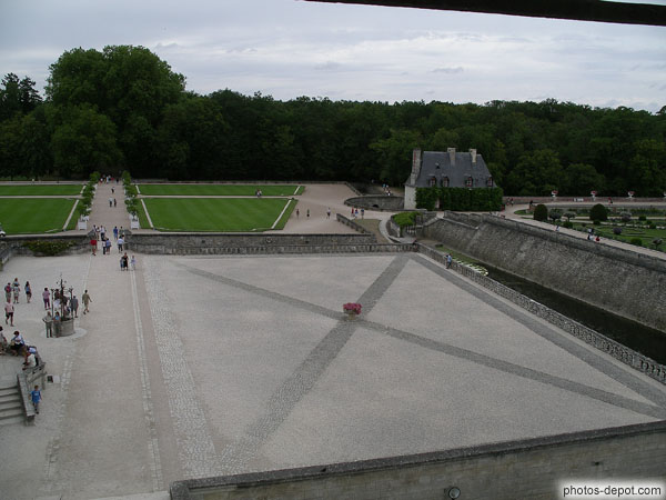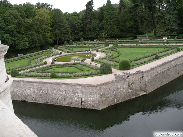 Avant cour reproduisant le plan de l'ancien chateau médiéval délimité par les douves, France, Centre, Chenonceaux