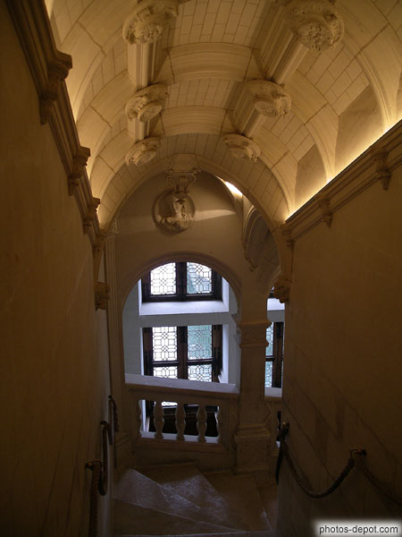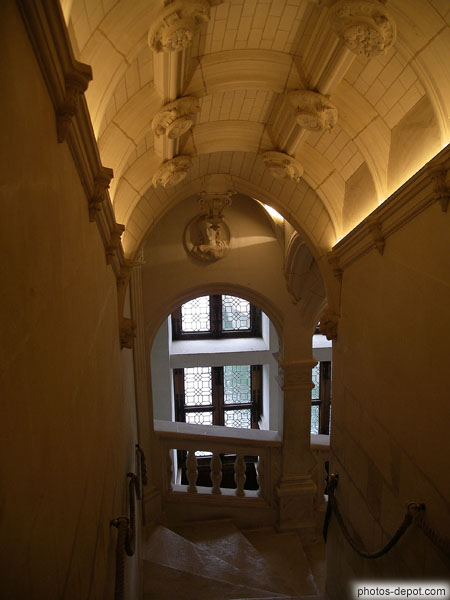 Escalier rampe sur rampe a voute rampante, France, Centre, Chenonceaux