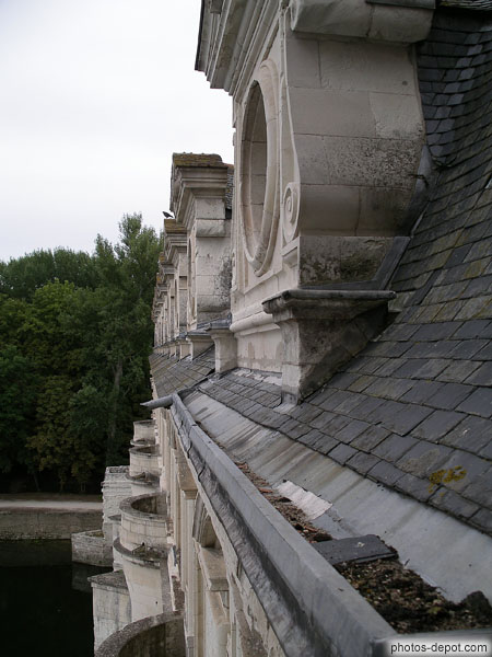 Toits de la galerie du chateau de Chenonceaux, France, Centre, Chenonceaux