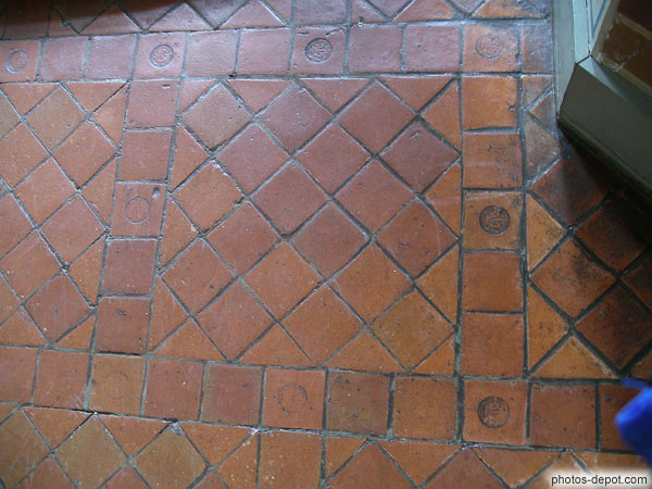 Carreaux de terre cuite estampillés d'une fleur de lys, France, Centre, Chenonceaux