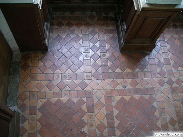 Pavage de petits carreaux timbrés renaissance, France, Centre, Chenonceaux