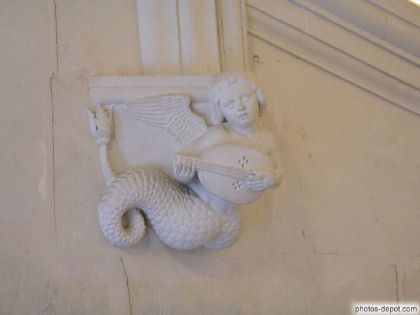 Cul de lampe en forme d'ange-sirène aux ailes et à queue de poisson, France, Centre, Chenonceaux