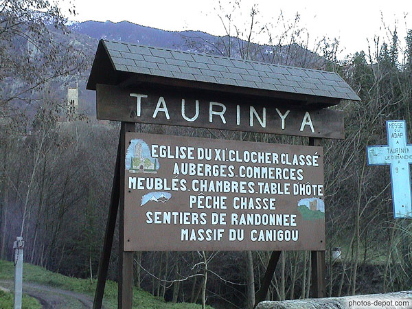 Pancarte entrée du village de Taurinya, France, Languedoc Roussillon, Taurinya
