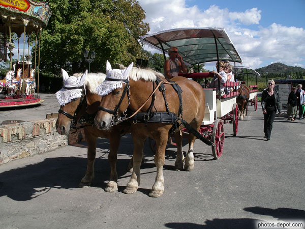 Chevaux attelés à une calèche de promenade, France, Languedoc Roussillon, Carcassonne
