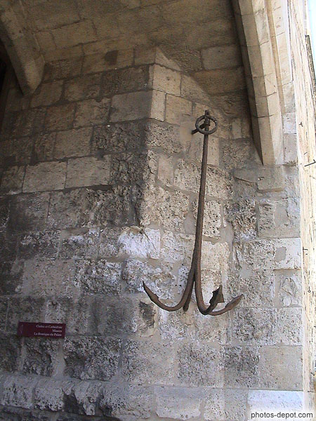 Ancre de marine à l'entrée du porche menant au cloître et à la cathédrale, France, Languedoc Roussillon, Narbonne