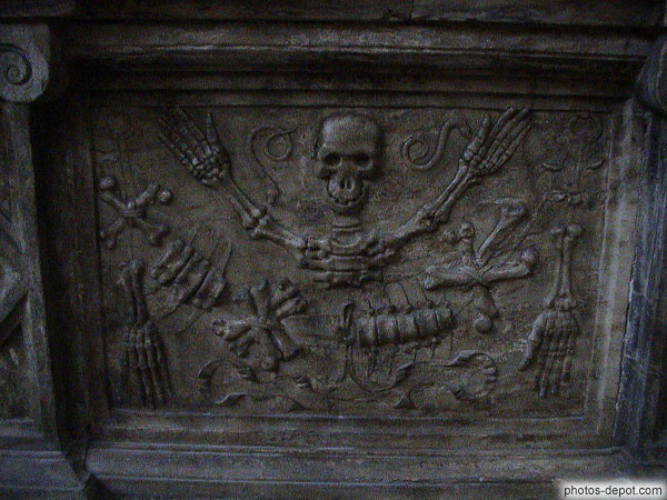 Dalles représentant des squelettes, cathédrale St Just, France, Languedoc Roussillon, Narbonne
