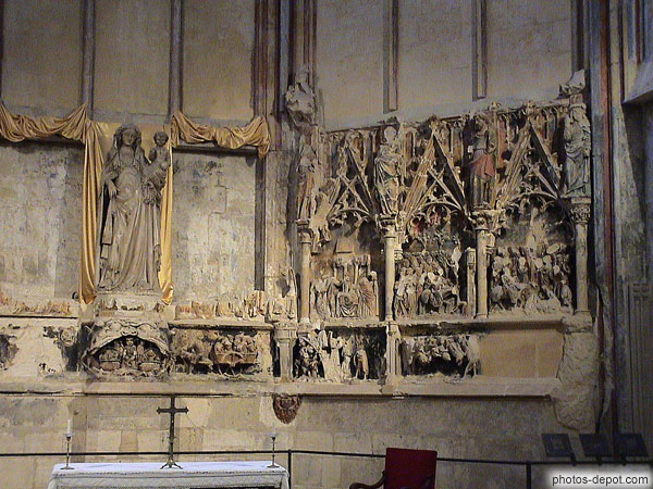 Vierge à l'enfant et bas relief, cathédrale St Just, France, Languedoc Roussillon, Narbonne