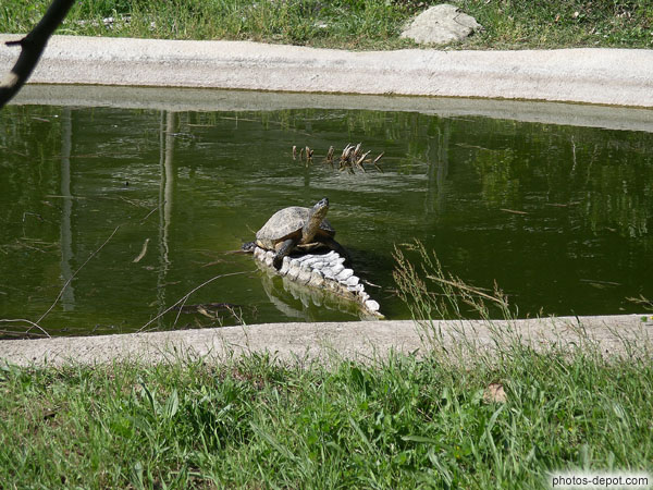 Les tortues montent chercher le repas des platemydes de St Hilaire, France, Languedoc Roussillon, Sorede