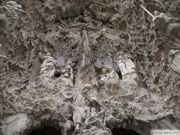 Vitraux et sculptures de la facade de la Nativité, Espagne, Barcelone, Sagrada Familia