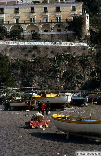 Barque de Dédé et filets de pêche sur la plage, Inconnu