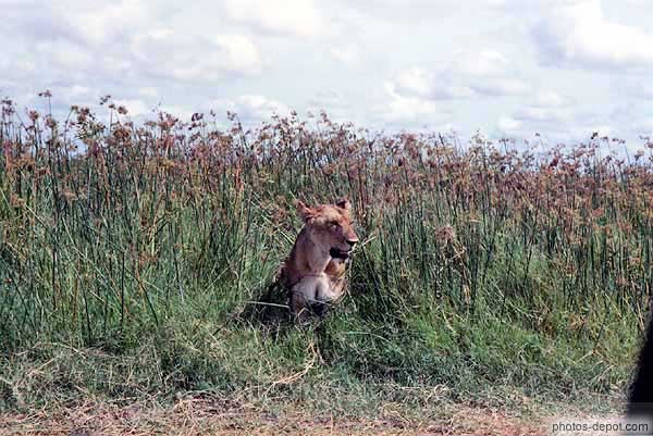 Lionne sortant la tête de la savane, Afrique, Kenya