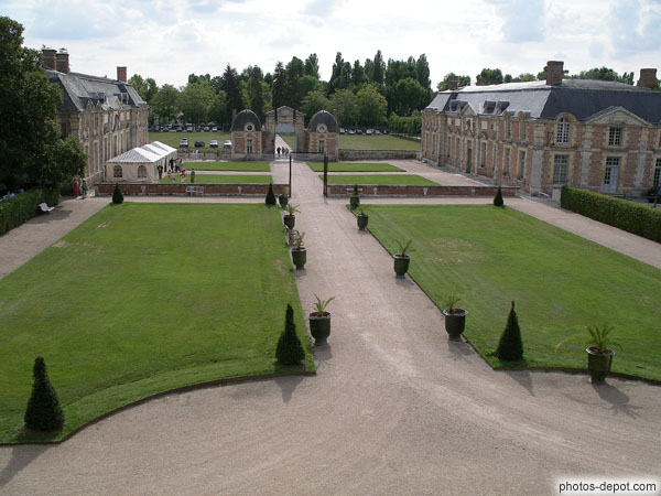 Cour d'honneur du chateau, carrés de pelouse du XVIIIe, France, Centre, la ferté St Aubin