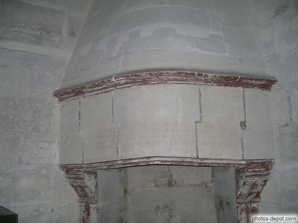 Gravures sur la cheminée dans une cellule des tours d'angles, France, Paris, Vincennes, Château de Vincennes