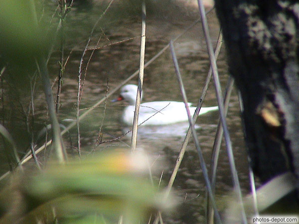 Canard blanc derrière les roseaux, France, Languedoc Roussillon, Réserve Africaine de Sigean