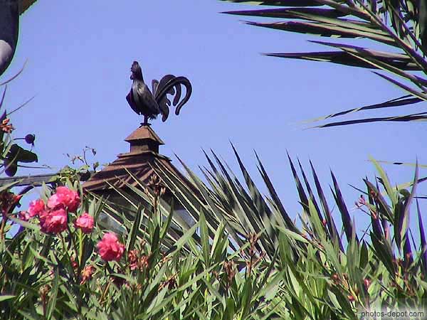Coq de fer forgé à travers les branchages, France, Languedoc Roussillon, Perpignan