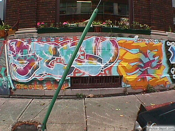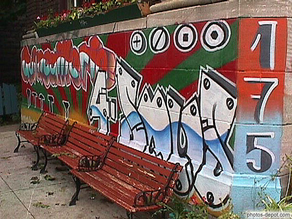 Banc devant mut peint, Canada, Quebec