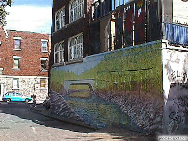 Peinture champètre sous fenêtres, Canada, Quebec