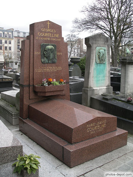 Tombe de Georges Courteline, 1858-1929. J'étais né pour rester jeune et j'ai eu l'avantage de m'en apercevoir le jour ou j'ai cessé de l'être, France, Paris, Pere Lachaise