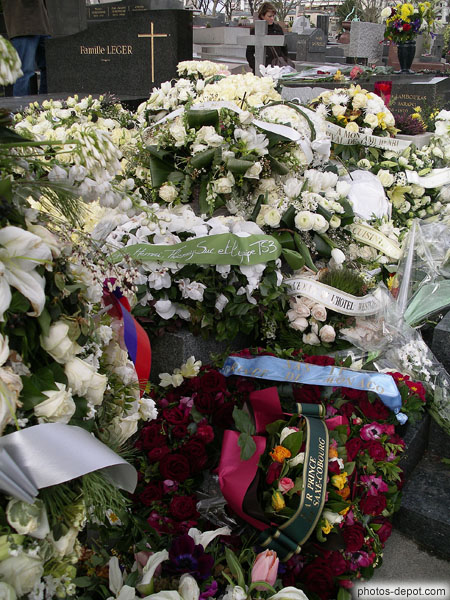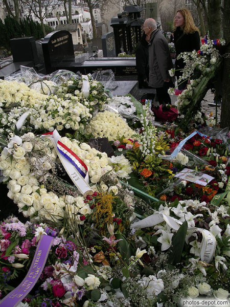 Tombe d'Henri Salvador recouverte de fleurs le 22 février 2008, France, Paris, Pere Lachaise
