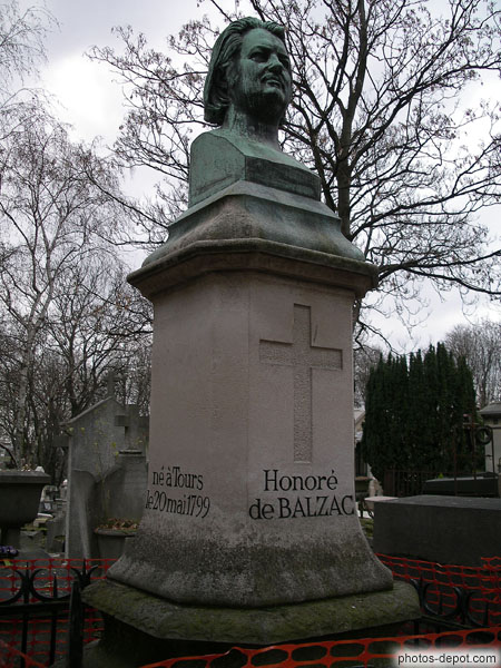 Tombe et buste d'Honoré de Balzac. 1799-1850. Romancier, France, Paris, Pere Lachaise