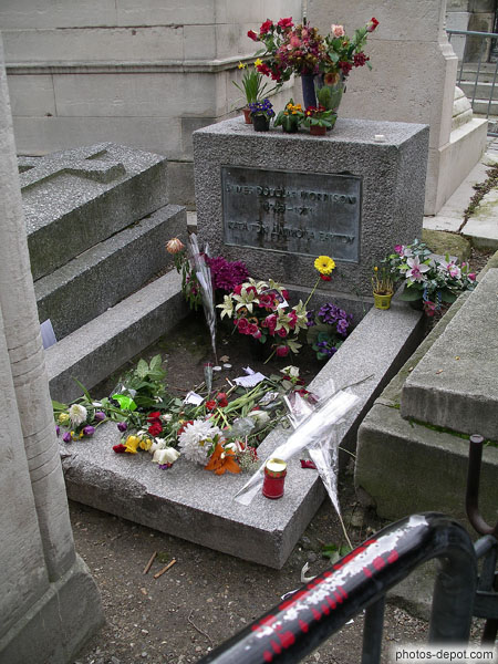 Fleurs sur la tombe de James Douglas Morrison. 1943 1971. Chanteur américain, France, Paris, Pere Lachaise