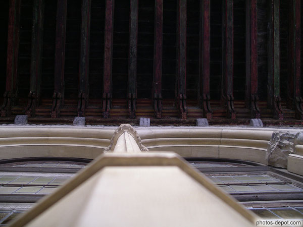 Fenêtres de l'Aula et charpente de la chambre royale, France, Languedoc Roussillon, Perpignan, palais des rois de Majorque