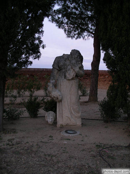 Statue dont la tête est posée par terre, France, Languedoc Roussillon, Perpignan, palais des rois de Majorque
