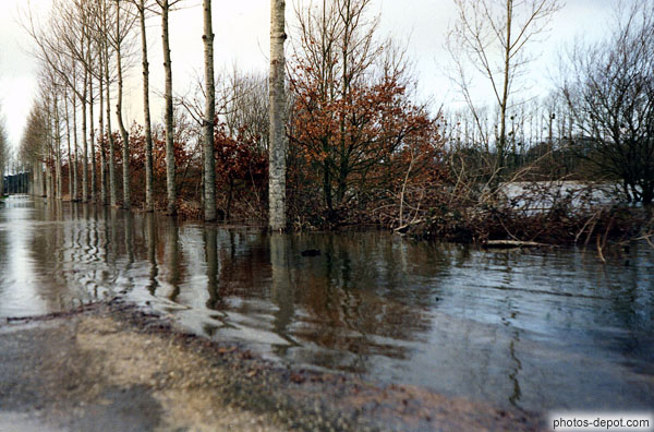 Arbres dans l'eau, inondation, France, Bretagne