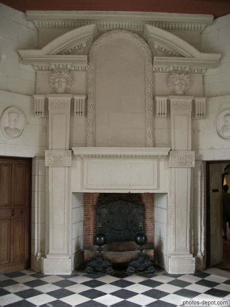 Belle cheminée renaissance à l'extremité de la galerie sur l'eau, France, Centre, Chenonceaux