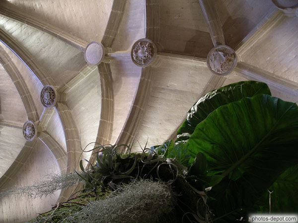 Voute rampante à nervures se coupant à angle droit. joints de rencontre ornés de clefs, caissons décorés., France, Centre, Chenonceaux